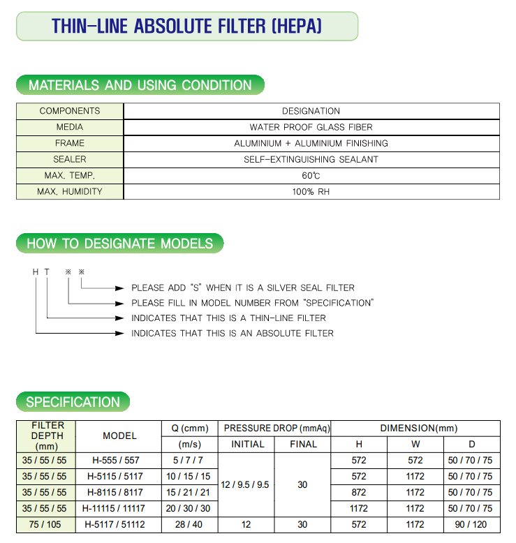 Lọc khí HEPA loại mỏng Thin-Line Filter