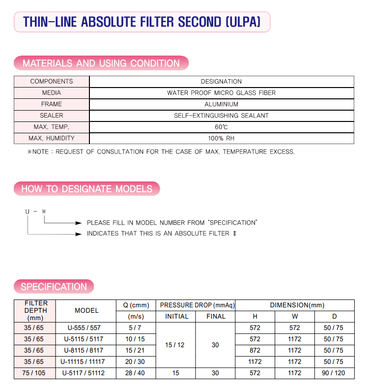 Lọc tinh loại mỏng ULPA thin-line Filter